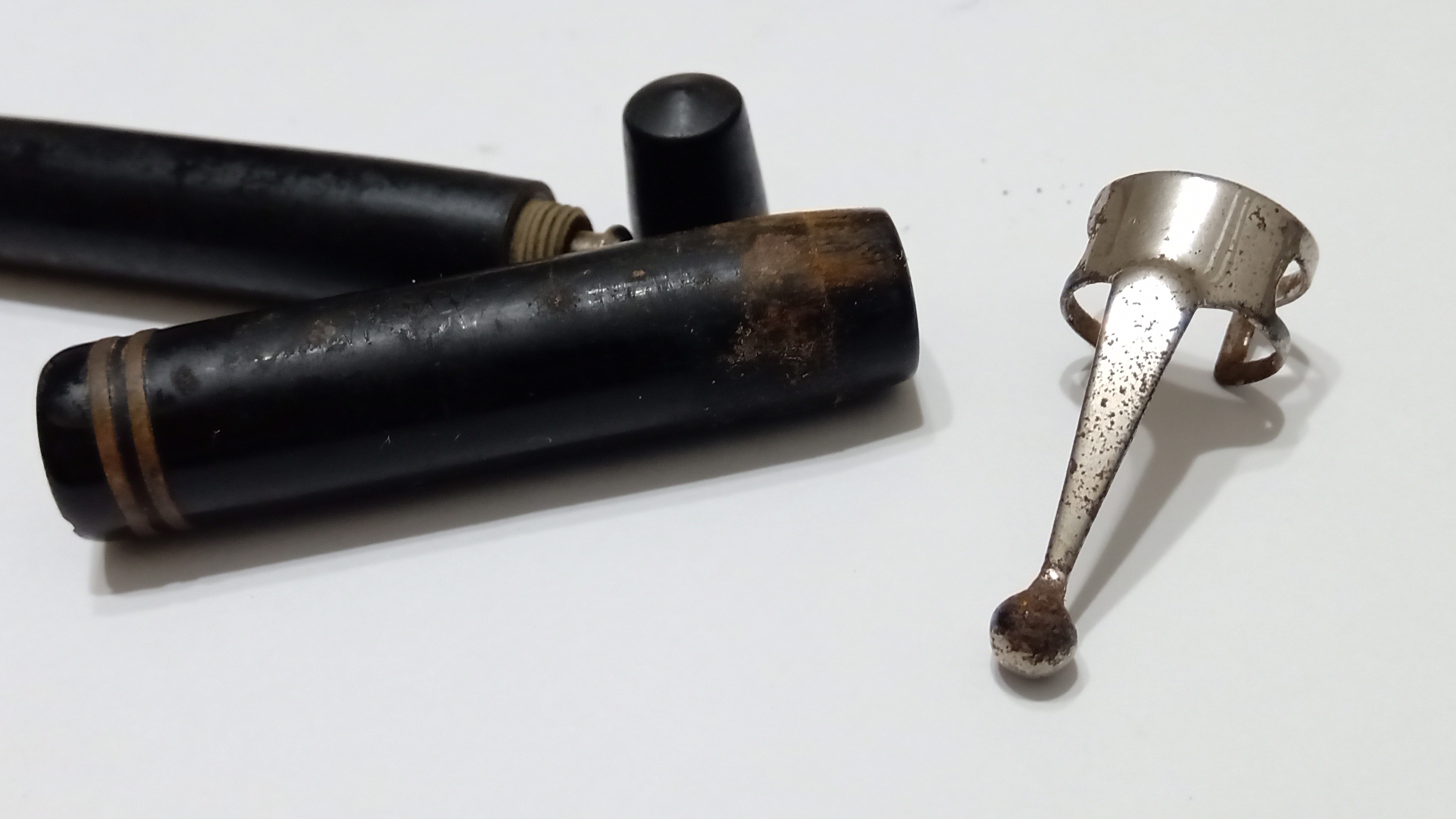 aunque el extremo superior del capuchón había acumulado grandes capas de óxido desprendido del clip, sin saber hasta qué punto se podía haber alterado el material...