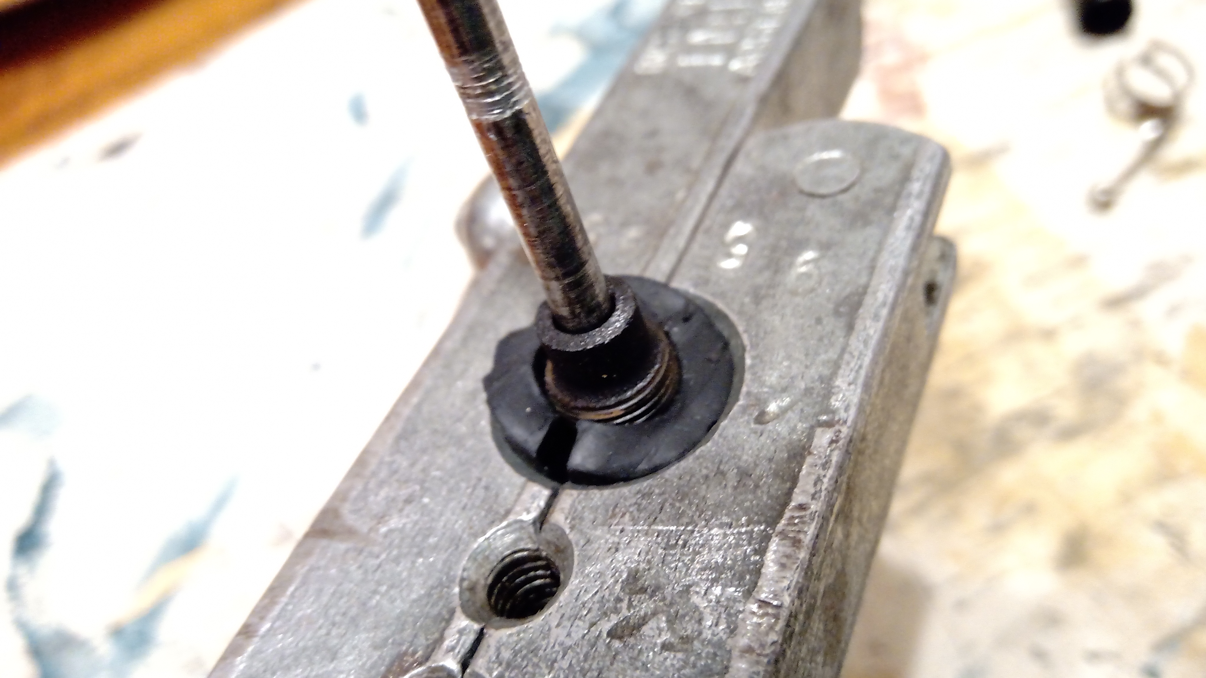 Il tappo cieco si è svitato facilmente, rivelando un pulsante cromato in condizioni piuttosto buone...
