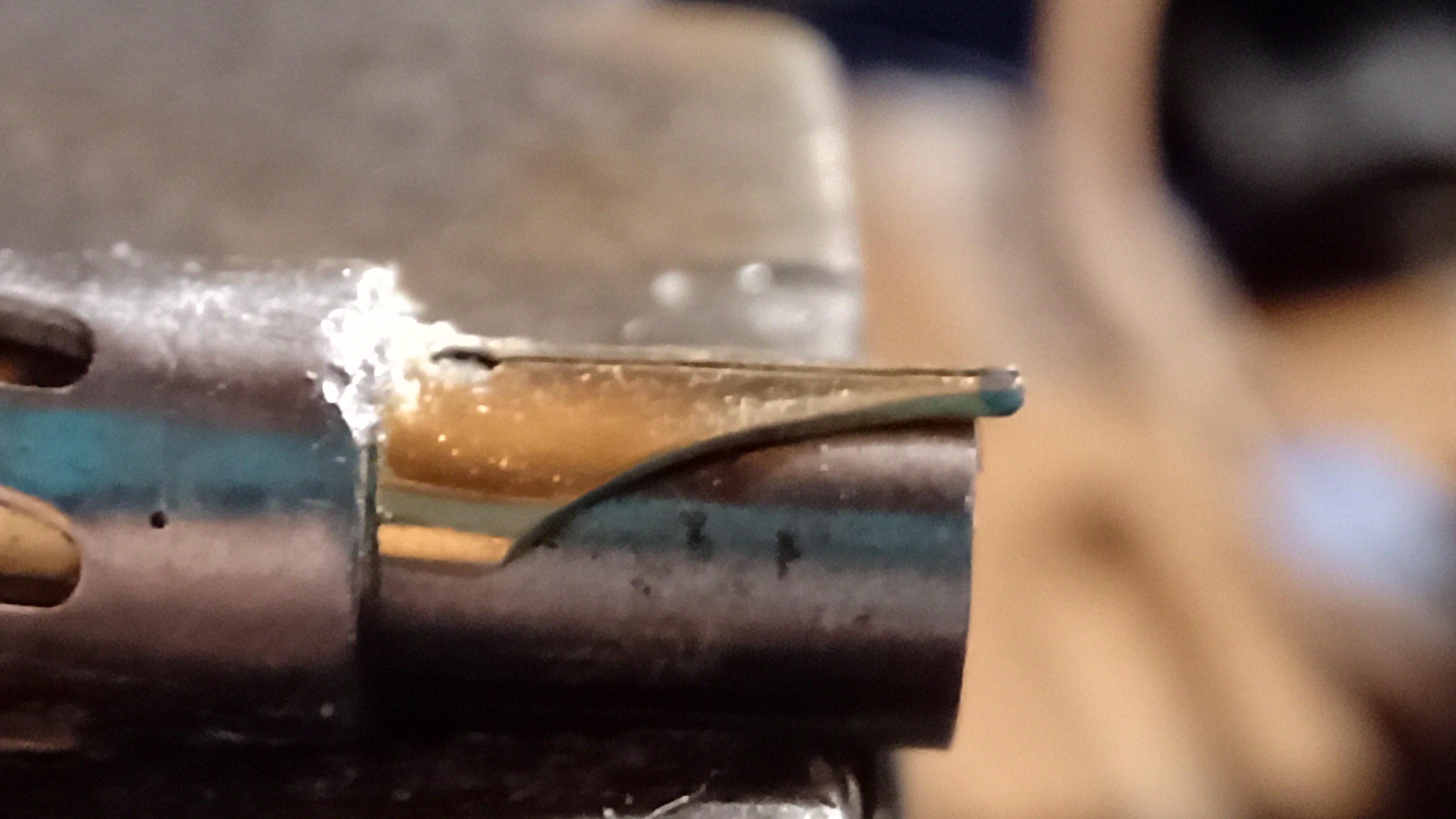 ma l'estremità superiore del cappuccio aveva accumulato grandi strati di ruggine staccatasi dalla clip, senza sapere fino a che punto il materiale potesse essere stato alterato...