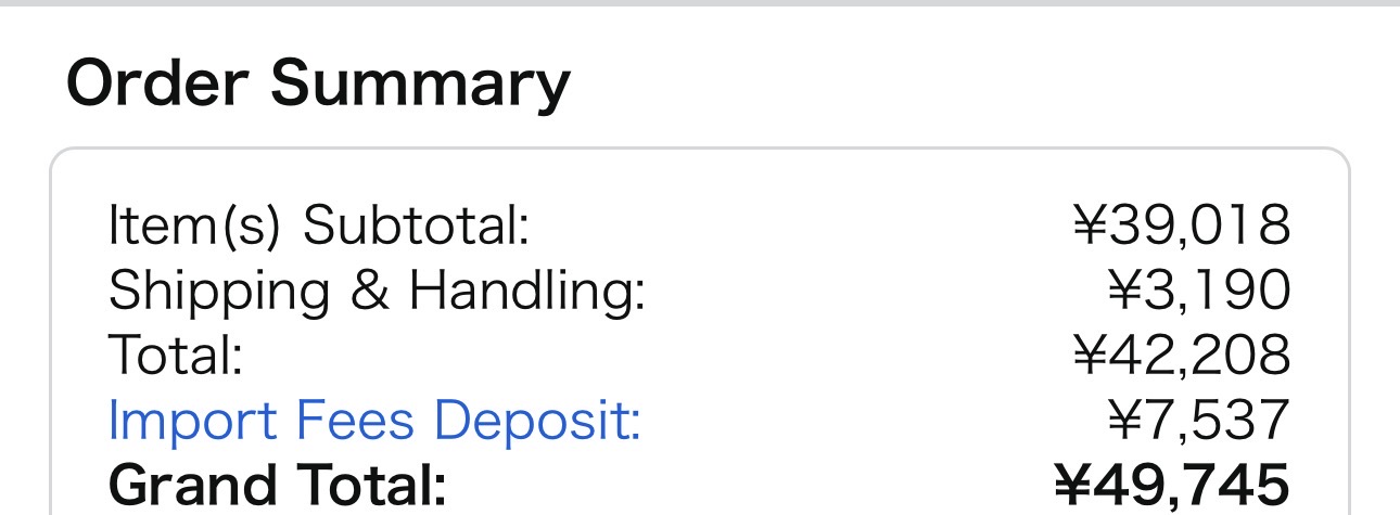 Risale a gennaio 2024, ma questo il mio acquisto da Amazon jp con totali e tasse che la piattaforma si occupa di pagare al posto tuo per evitare sorprese (purtroppo non ce l’hanno disponibile, altrimenti ti consiglierei di prenderla lì).