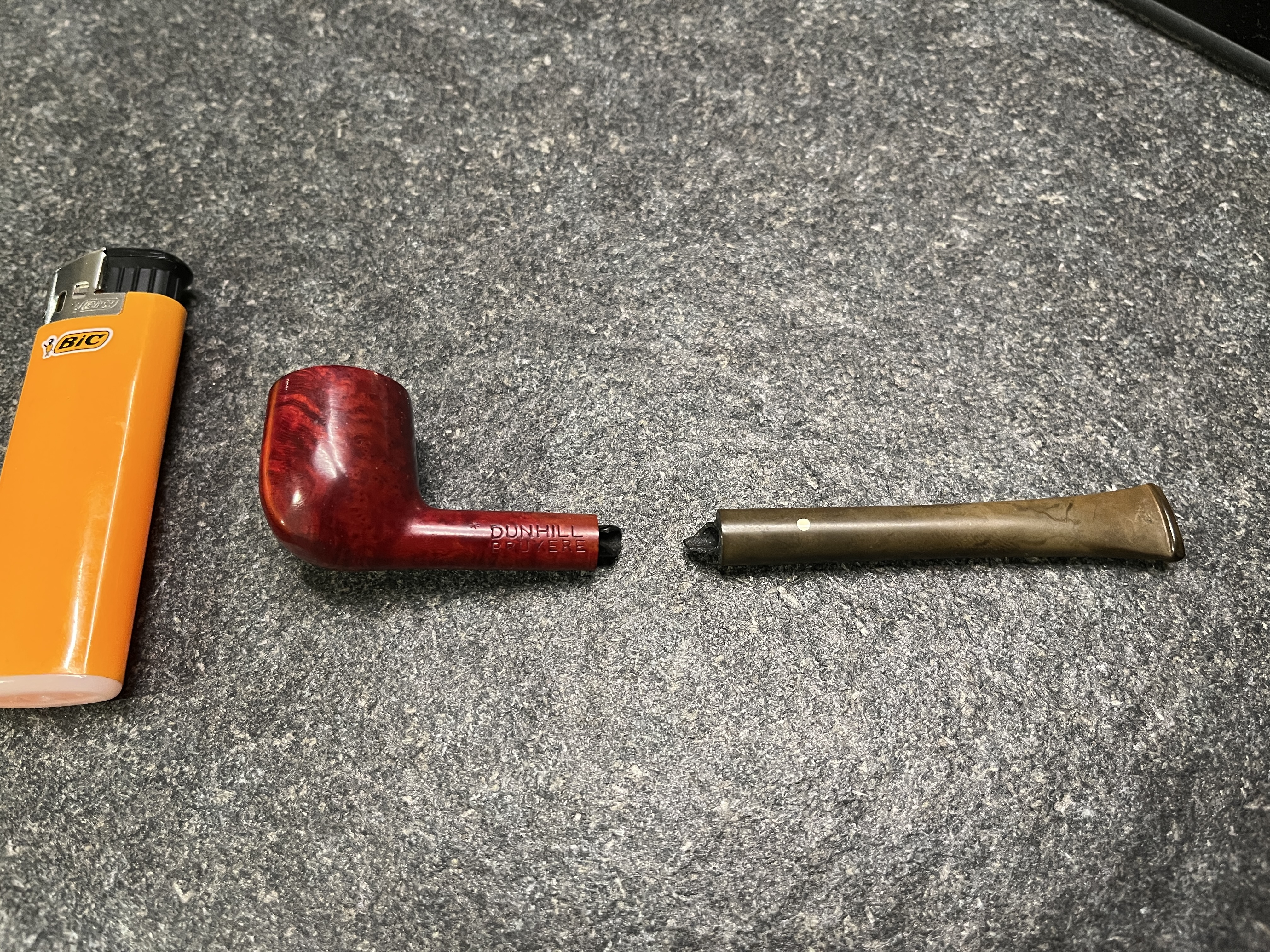 Una Dunhill merita una riparazione ben fatta, oppure un bocchino nuovo. O la porti da una tabaccheria che vende pipe Dunhill o la mandi da un riparatore (es. Gilli a Torino). Il tenone si sostituisce con altro, meglio in materiale non metallico che appesantirebbe la pipa e solleciterebbe inutilmente il cannello.