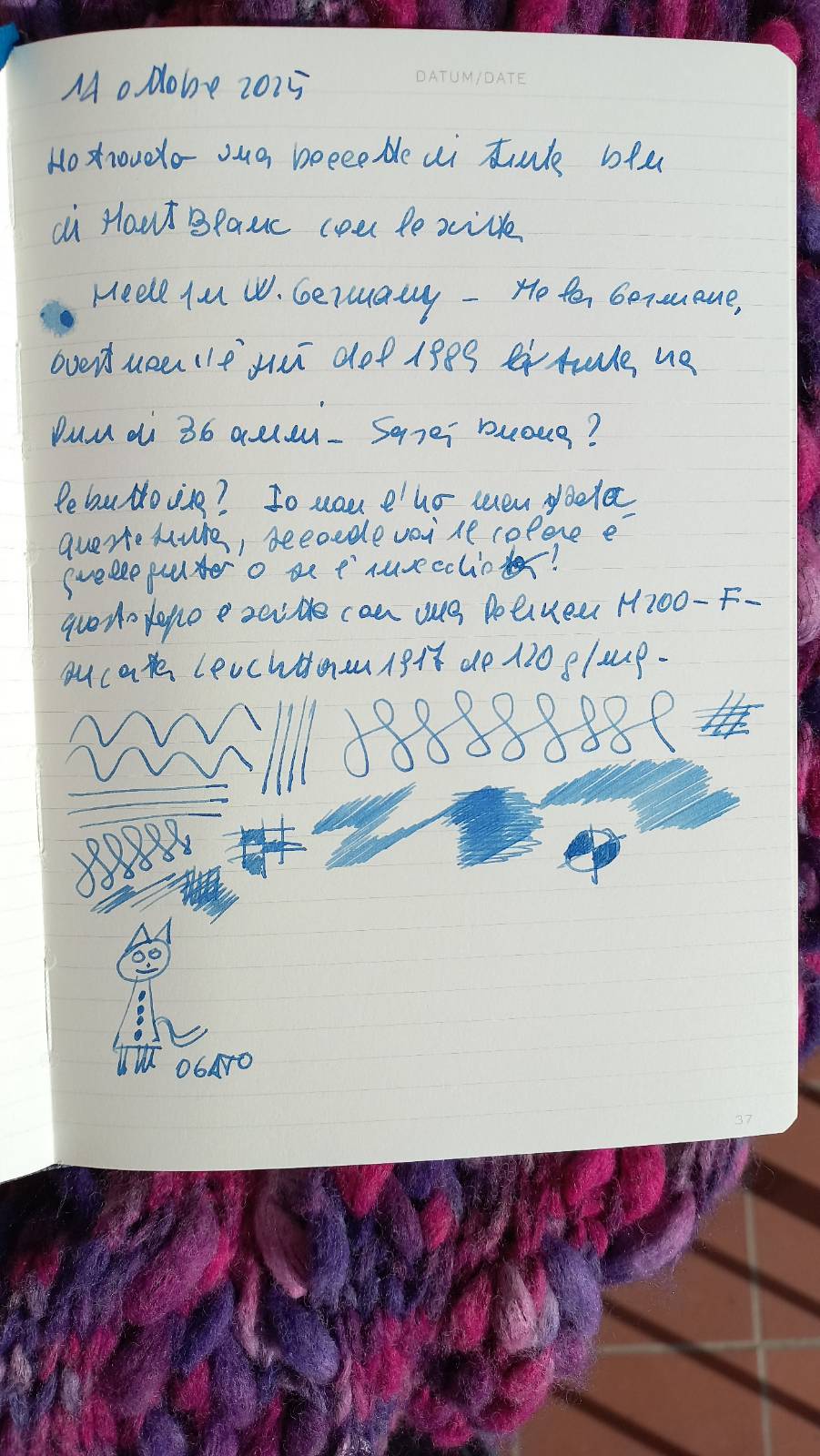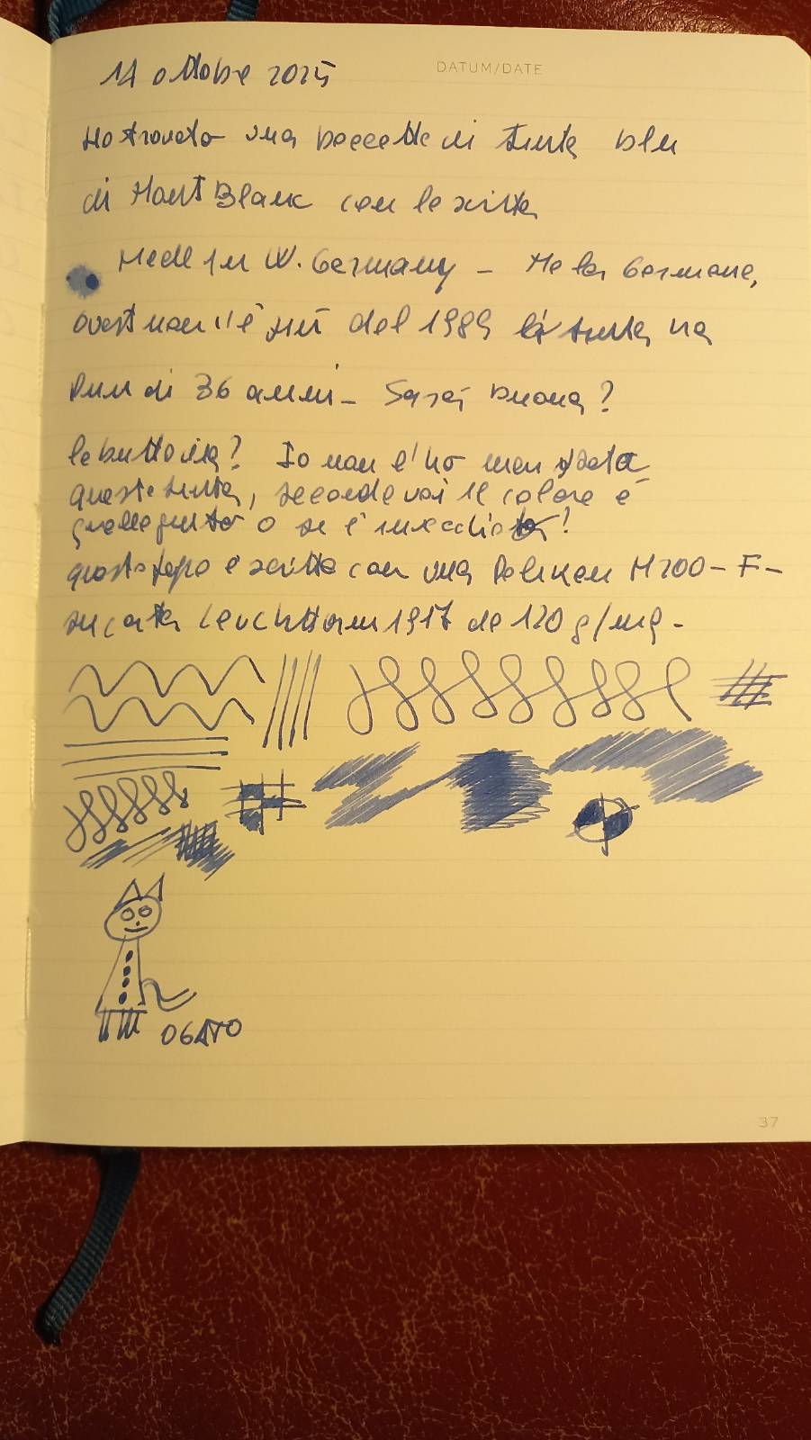 Ho trovato, in un armadio, nascosta dietro vecchie pubblicazioni del Touring Club Italiano, una boccetta di tinta blu di Montblanc con la scritta Made in W.-Germany.