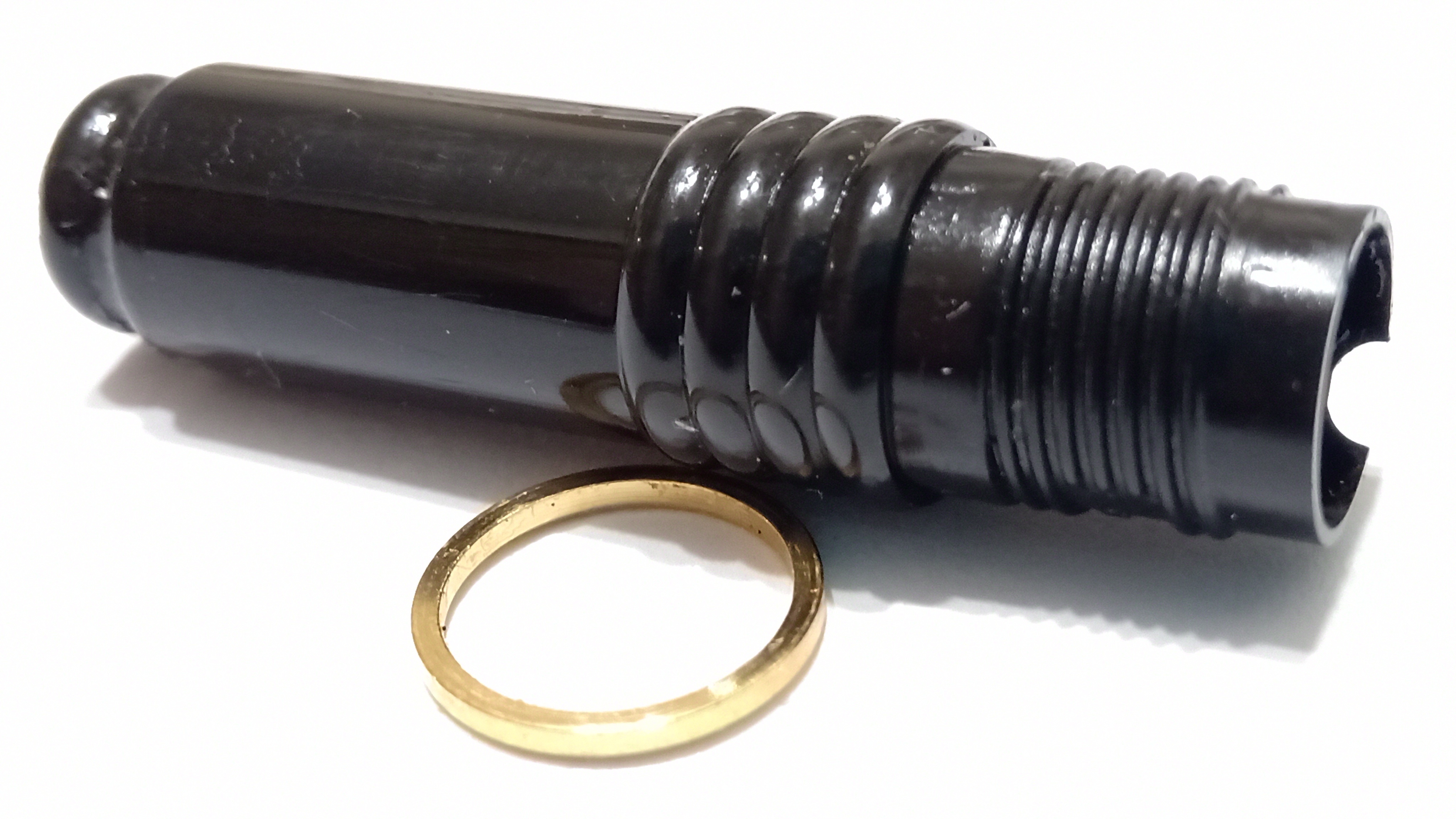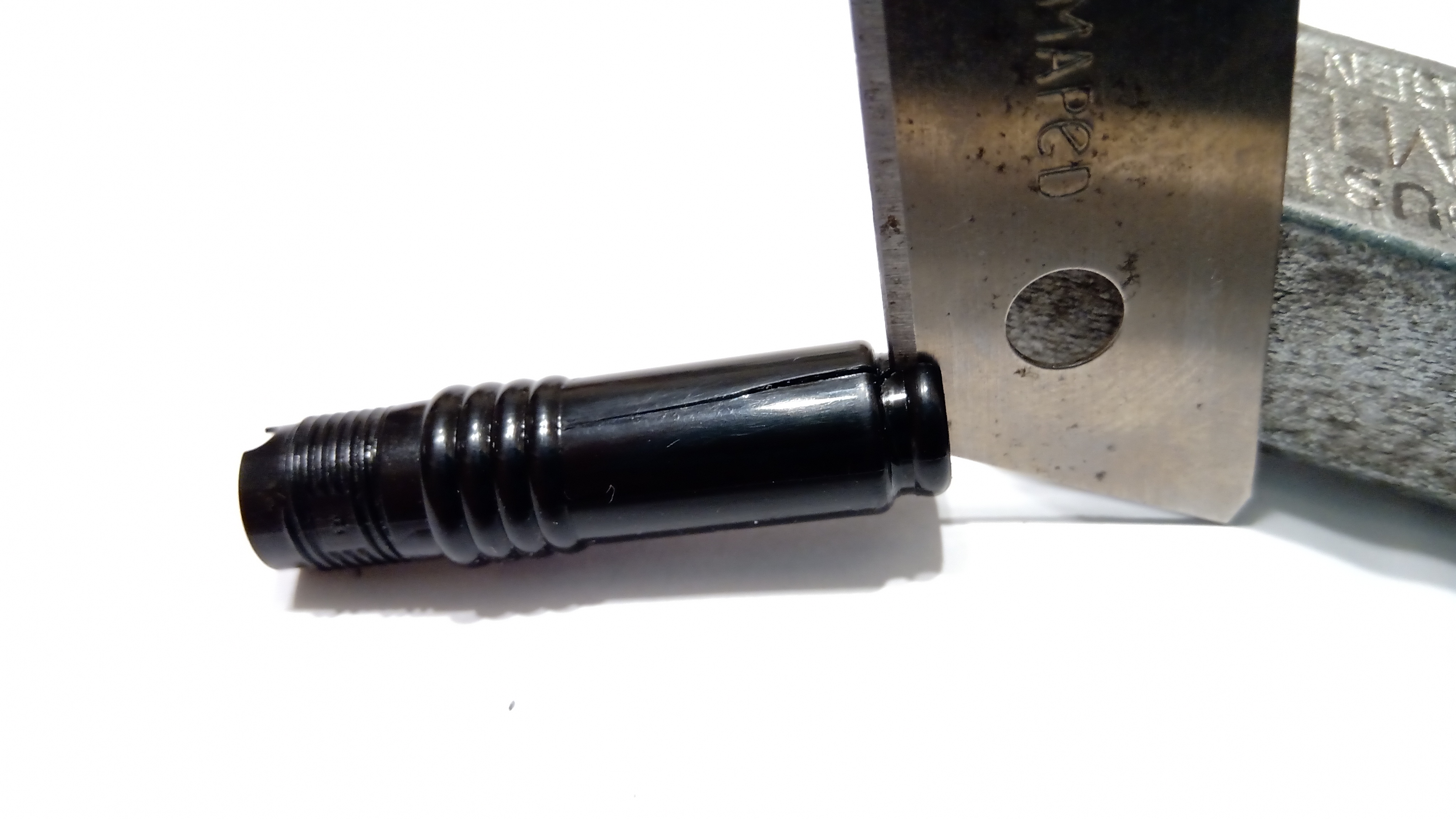 Limpié entonces profundamente el material del grip en agua con detergente, abriendo a continuación la grieta e intentando luego fusionar con cianoacrilato, cosa que sería de resultado bastante dudoso ya que la pieza está constantemente sometida a expansión, debido a la colocación a presión del conjunto alimentador y plumín...