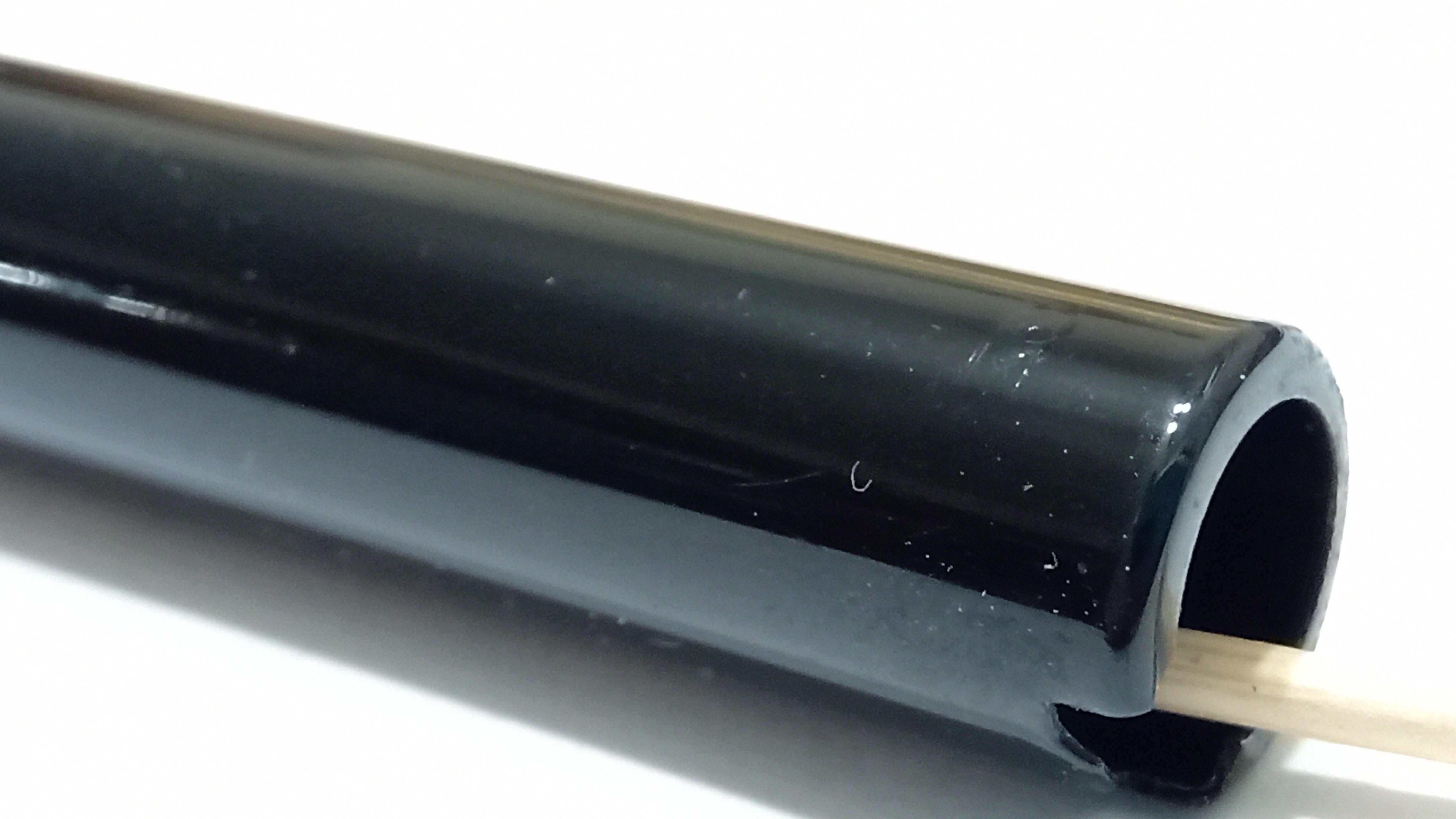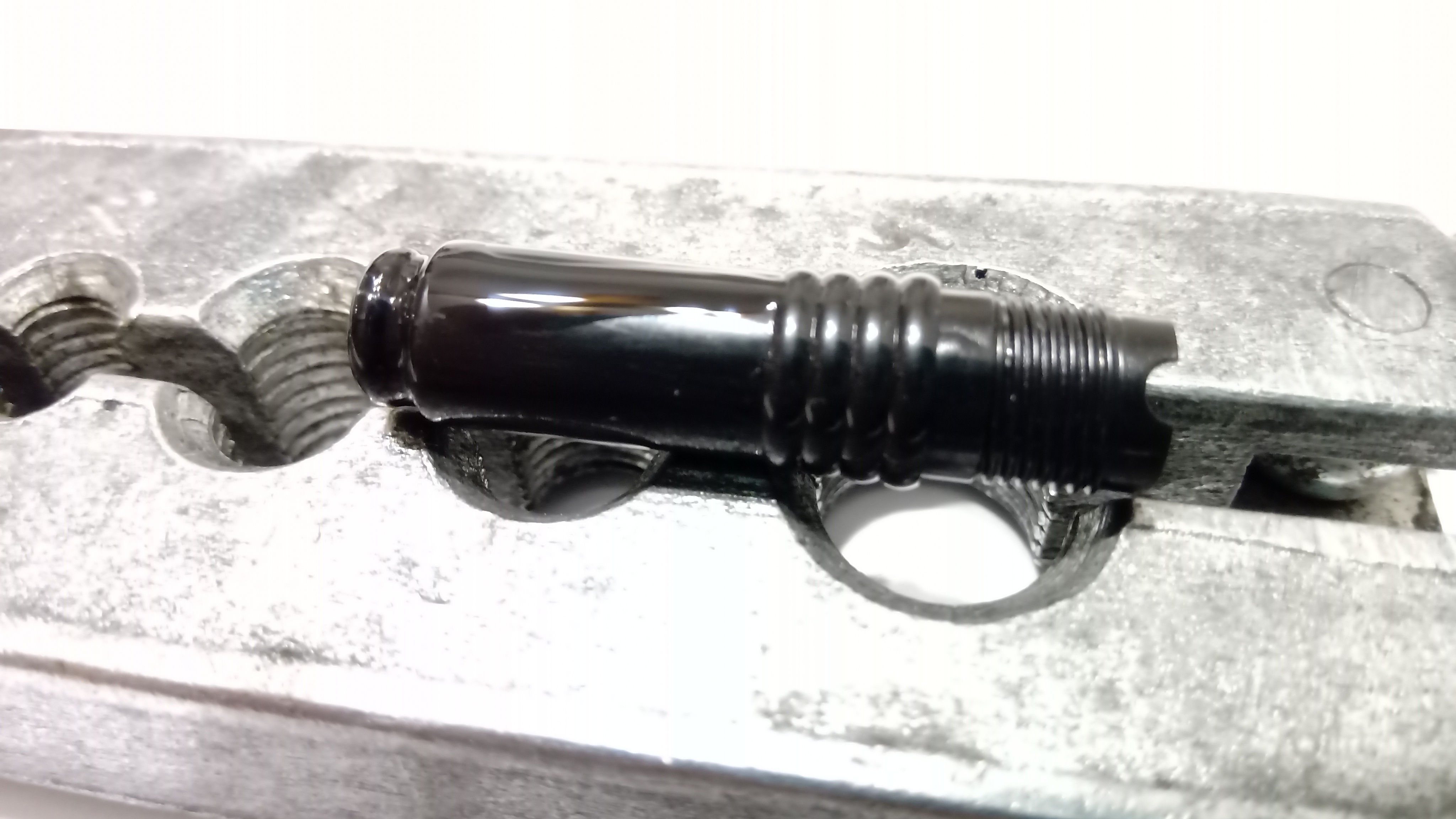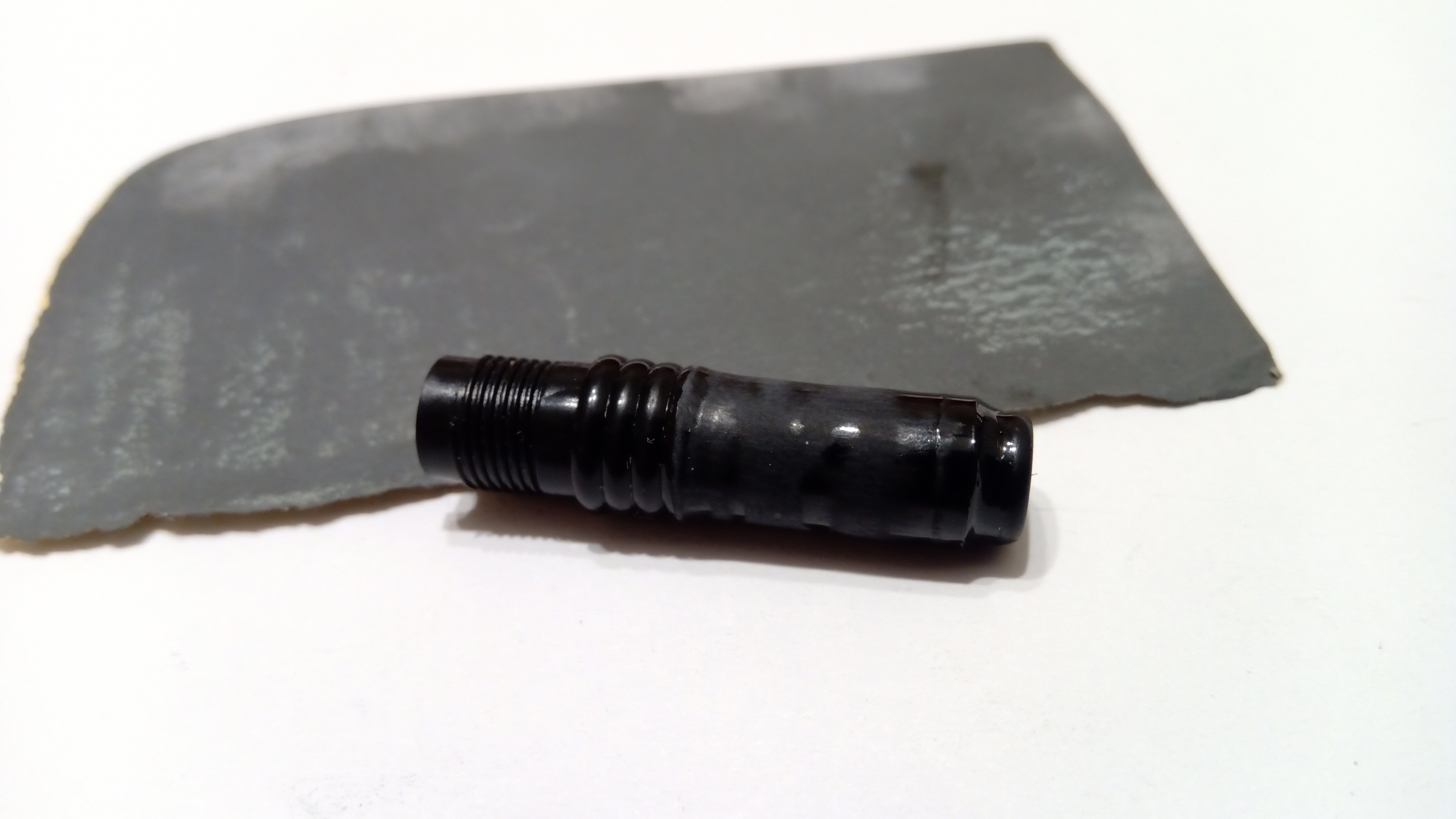 Ed ecco la cattiva notizia... l'impugnatura non è realizzata in celluloide o acrilico, bensì in PVC iniettato con memoria, che non può essere ammorbidito né dissolto con quasi nessun solvente, ma solo fuso con il calore e rifondendo le parti... cosa fare allora...?