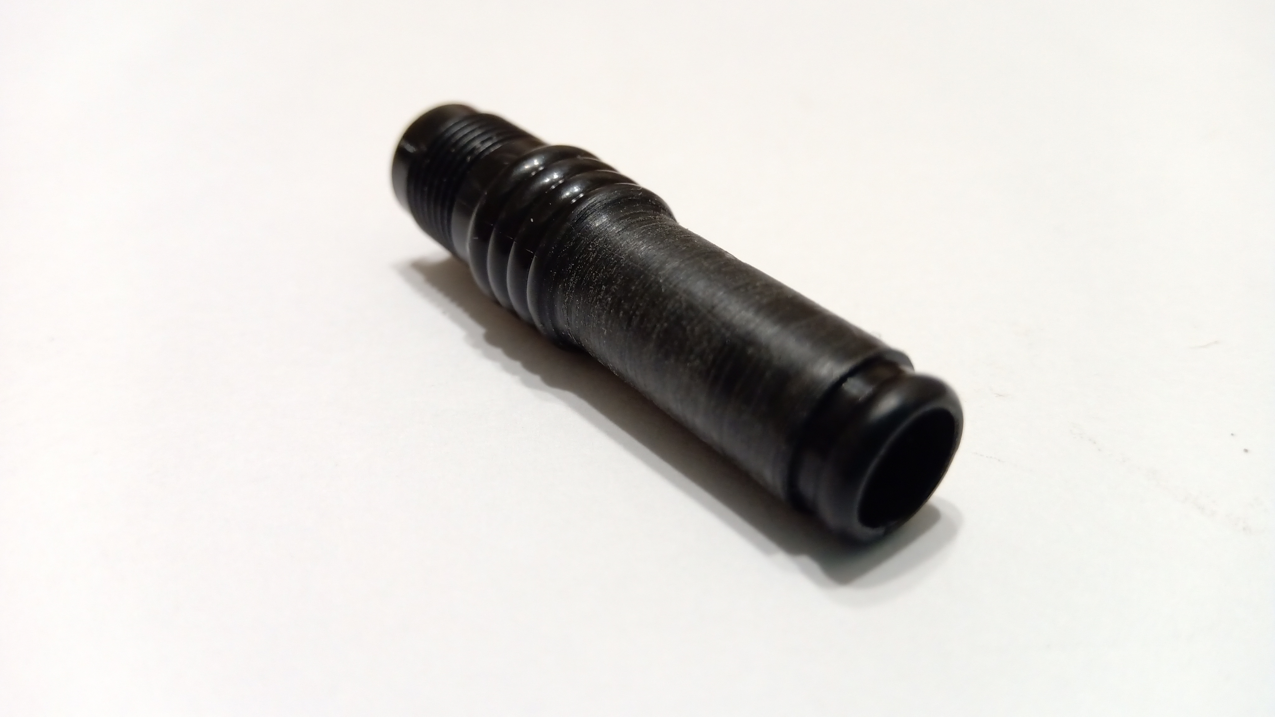 Una volta assemblati tutti i pezzi, ho montato completamente l'impugnatura, inserendo un convertitore di piccola capacità che si adattasse bene all'interno del fusto...
