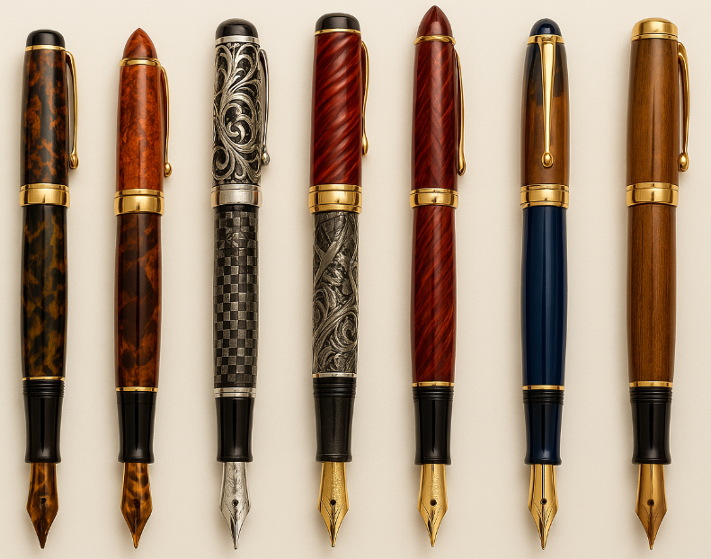 Ciao a tutti, prendendo spunto da un'idea che mi è venuta in mente per mischiare i pezzi di due penne, vi propongo questo simpatico giochino, ho chiesto all'AI di generare un set di penne diverse tra loro, chiedendo di crearle il più eleganti possibile. Ecco il risultato:
