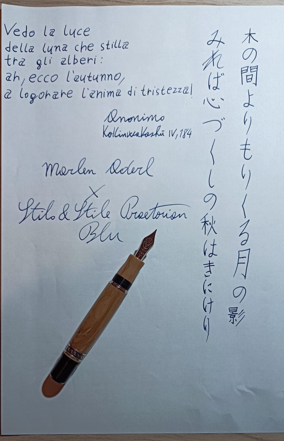 Giungiamo alle prestazioni di scrittura: si tratta di un pennino rigido appena molleggiato, il tratto è un F europeo dal flusso abbondante, quindi è decisamente più spesso di quello cui sono abituato, ma lo trovo molto piacevole nella scrittura, è un pennino che sa dare soddisfazioni. La buona sensazione di scrittura è aiutata dall'ergonomia della penna: sembra quasi progettata per la mia mano, la sezione è comodissima, la lunghezza è perfetta per la mia mano, il peso è quel tanto che basta ad assicurare un buon bilanciamento in fase di scrittura. Vi lascio come al solito una prova.