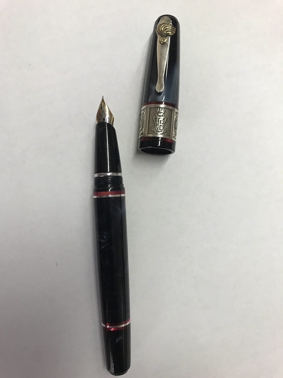 In conclusione, si tratta di una penna per me insolita, “eccessiva” per certi versi, ma me ne sono innamorato perché si sente solida in mano, è una grande scrittrice, ha minuterie che sono lavori di oreficeria, trae ispirazione dalle radici culturali autoctone della nostra penisola. Secondo me ben rappresenta quell'idea di “italiano” che hanno gli stranieri, elegante ma a volte un po' appariscente. L'unica cosa che avrei preferito diversa è il fermaglio, il profilo di quell'uomo panciuto è per me leggermente inquietante perché sembra quasi presagire la fine che farò se non mi do una regolata con i dolci