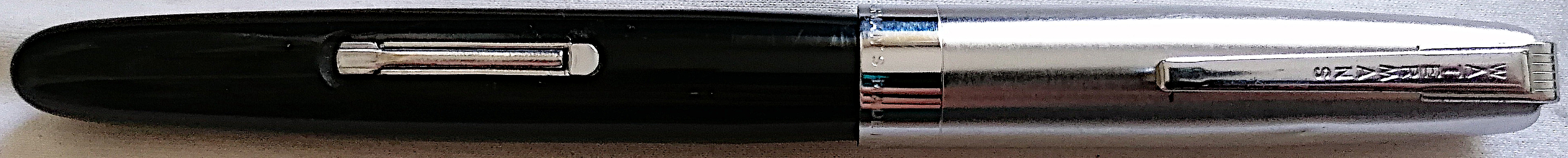 Mi spiego: ho trovato (forse è proprio il riferimento che ha anche trovato Otto) la vendita di un modello rosso che ha il cappuccio ad avvitamento in acciaio spazzolato identico compresa l'ampia fascia finale dove è inciso "WATERMAN'S MADE IN U.S.A." , non determinante ma è identico anche l'alimentatore, uguale misura della clip, pennino semi-hooded. Penna definita degli anni '50 perchè diversa da quella degli anni '40 e presente in un catalogo Waterman del 1953 col nome di New Crusader.
