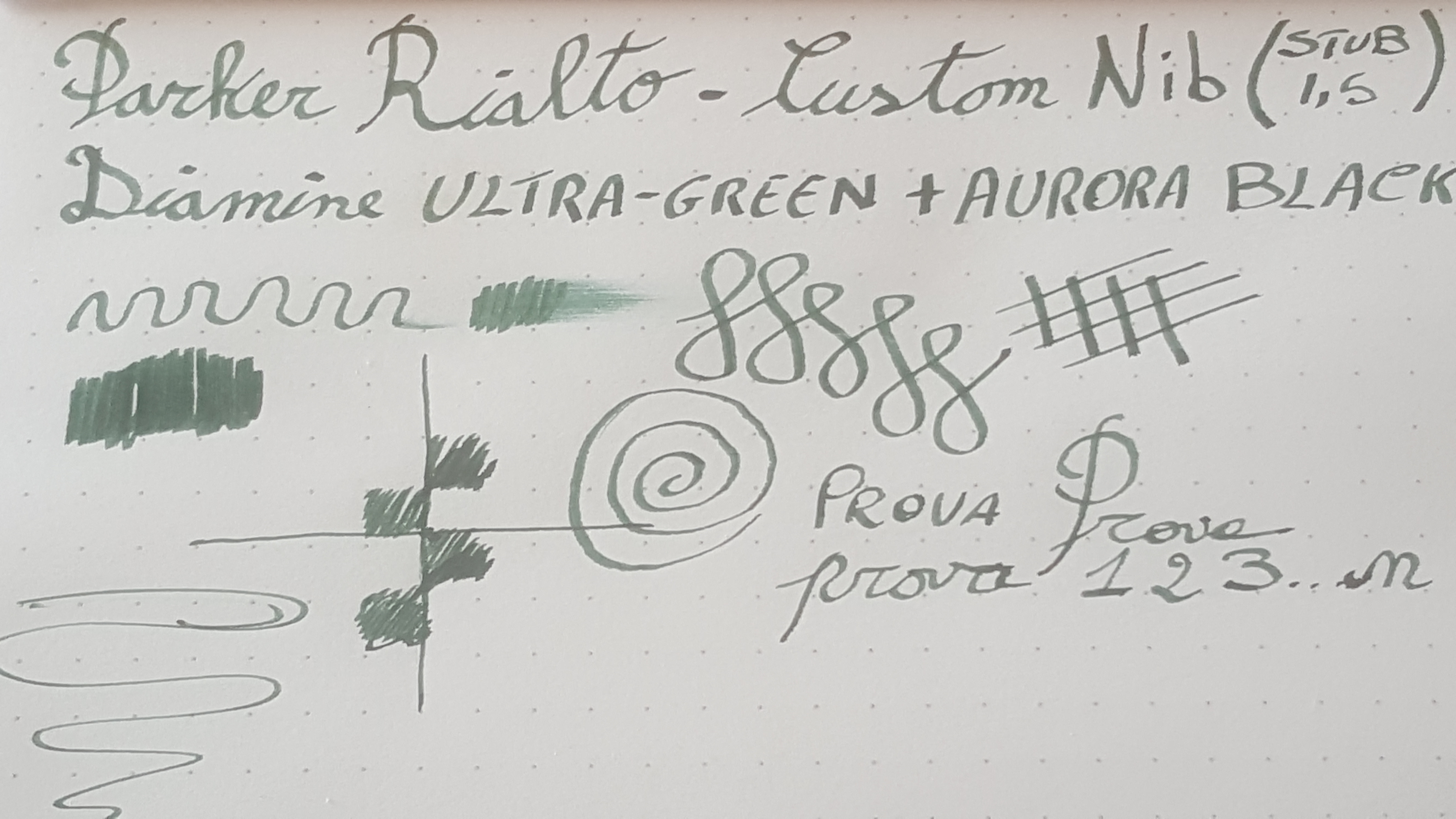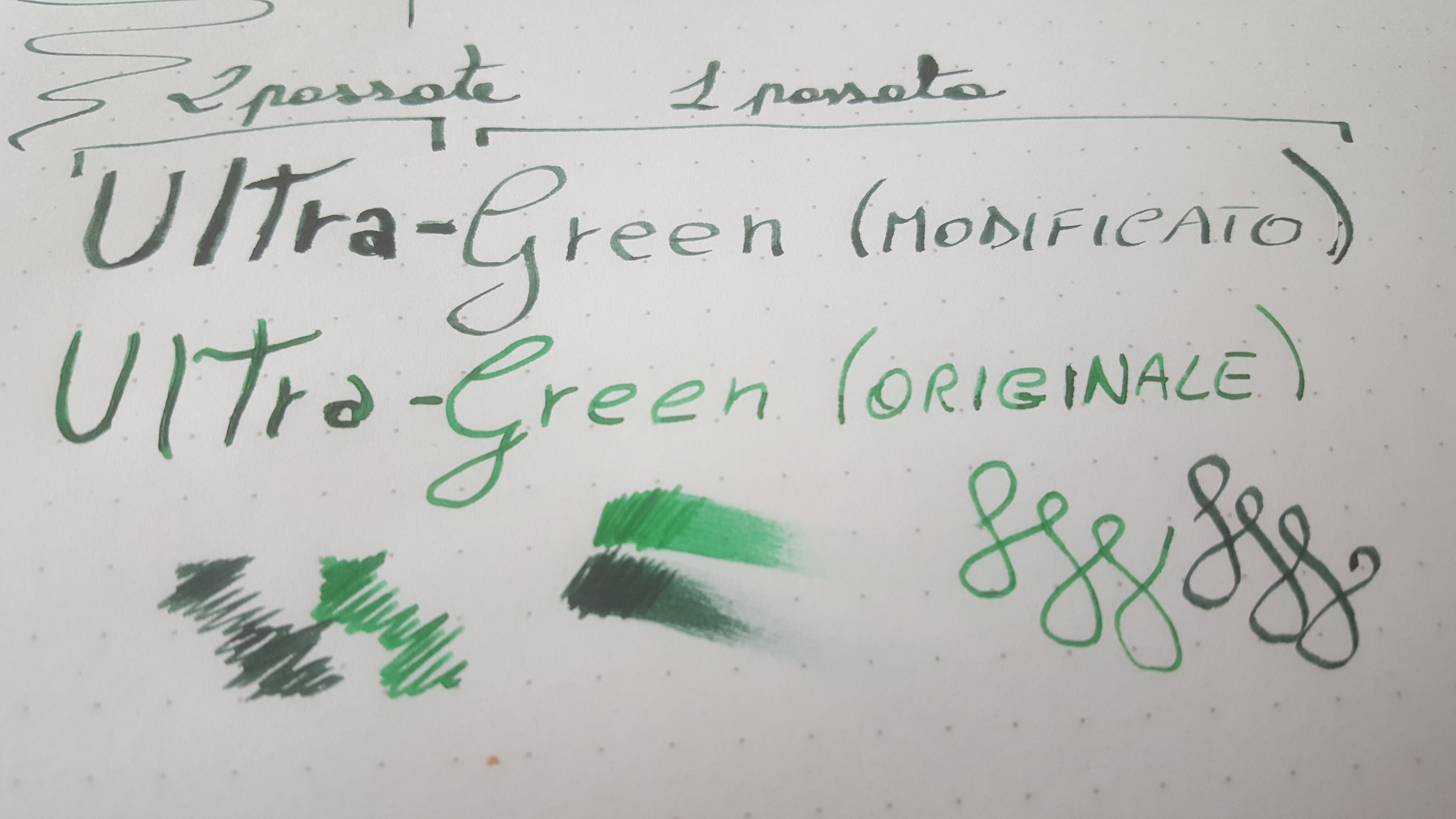 Io l'ho fatto da qualche giorno..me ho messo un po' in una cartuccia e caricato su una penna..effetto molto bello, per scelta dopl diverse prove che purtroppo non ho sbadatemente conservato ho ottenuto un verde-nero sobrio, ora aspetto eventuali reazioni prima di caricarlo su altre penne! Domani carico una foto dell'attuale mixcusdenver ha scritto:uso questo verde e ne sono molto soddisfatto, ma lo vorrei un pizzico più scuro, se azzardassi un test prelevandone 5 ml e aggiungendoci qualche goccia (quante nel caso?) di aurora nero potrei raggiungere il mio obiettivo? allo stesso tempo potrei fare qualche pasticcio mischiandoli?