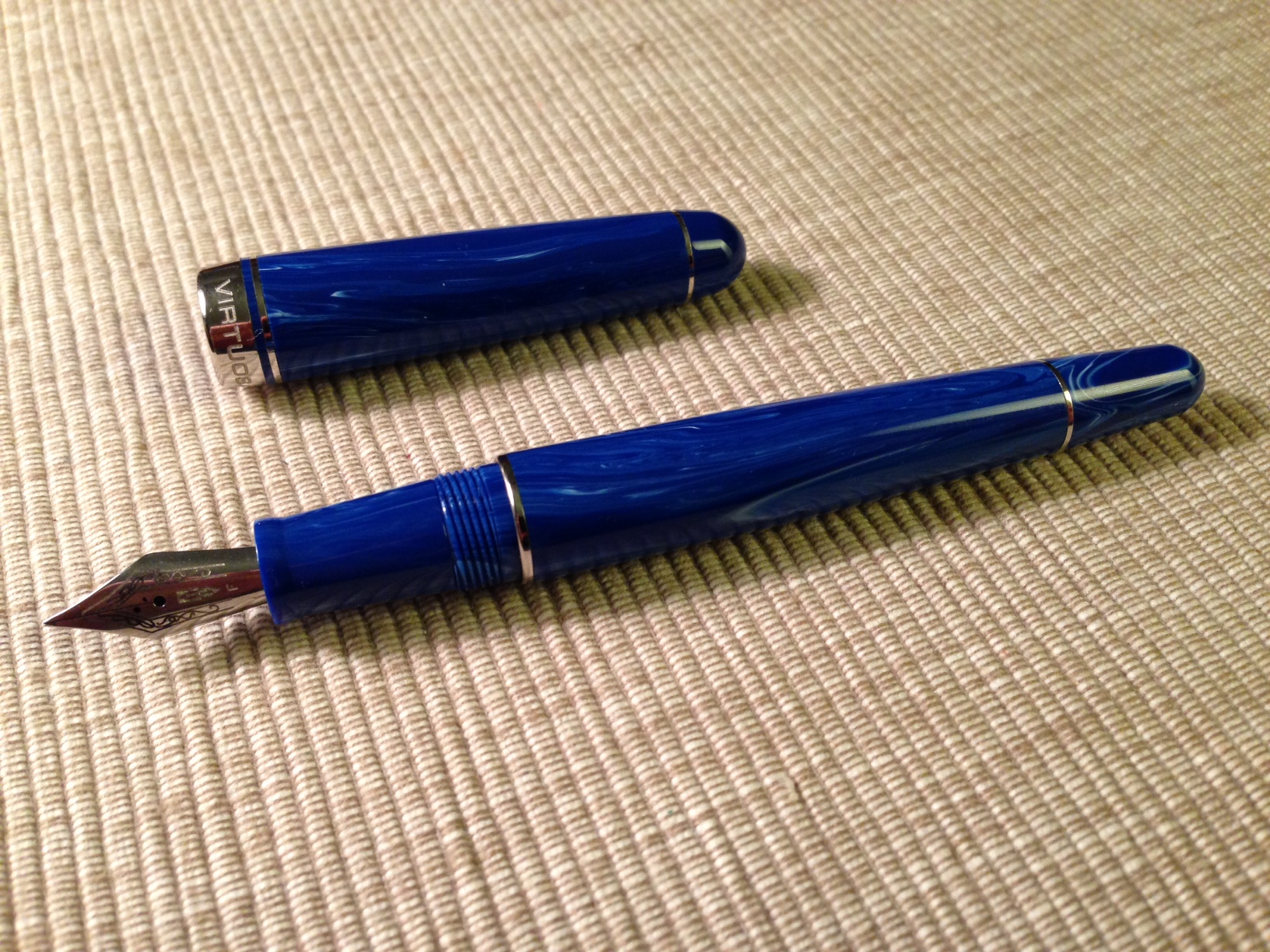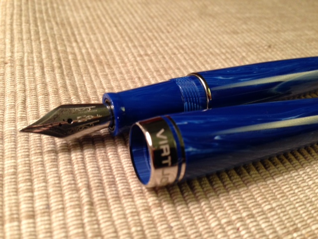 Si tratta di una Delta Virtuosa, pennino in acciaio f (tratto simile a medio) che ho appena inchiostrato con cartuccia Herbin Perle Noire.