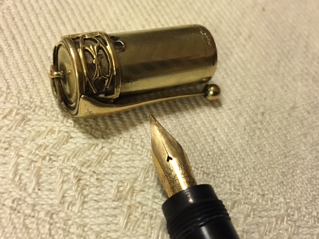 Tuttavia, il sistema di caricamento, alla luce delle invenzioni successive, non è certo il più comodo né il più sicuro. Aggiungerei che nella maggior parte dei casi, se la penna non ha goduto di un restauro, è quasi impossibile che faccia quello che dovrebbe comunque fare, cioè tenere e non perdere inchiostro... Ma, una volta ripristinata la tenuta, la penna si può usare tranquillamente, con la giusta tecnica di apertura etc...