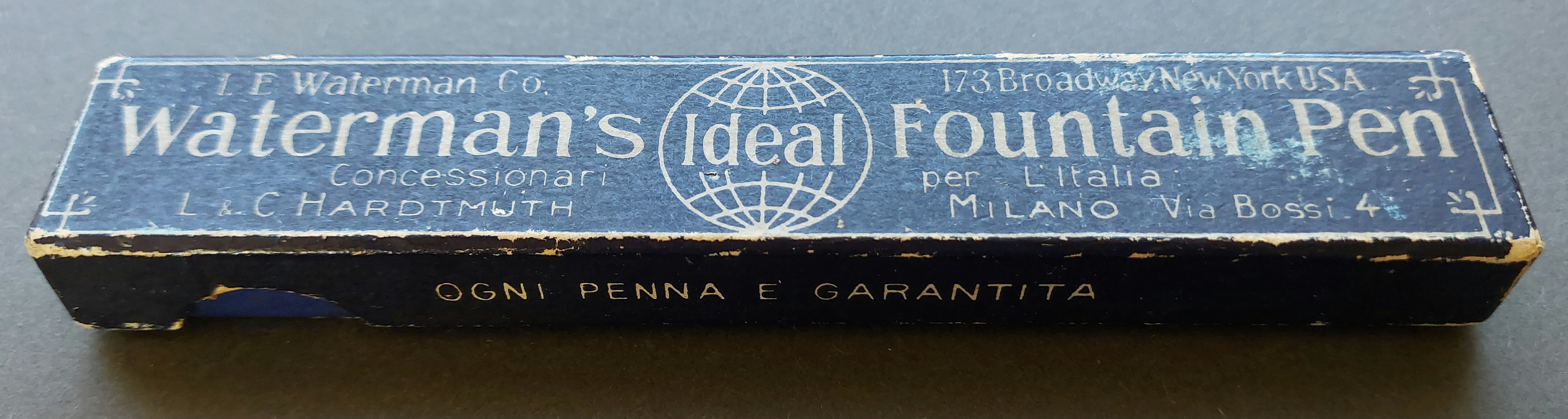 Se il limite "inferiore" per la datazione della penna è il 1903, anno dell'ultimo brevetto riportato, tuttavia non abbiamo pubblicità anteriori al 1905 in Italia: la prima è un mio ritrovamento del Febbraio 1905, dove compaiono per la prima volta Waterman e la Ditta L.&C. Hardtmuth, uno dei principali produttori mondiali di matite, leader di mercato con la celebre Koh-I-Noor, che disponeva di fabbriche, depositi e canali di distribuzione in molti Paesi nel mondo.