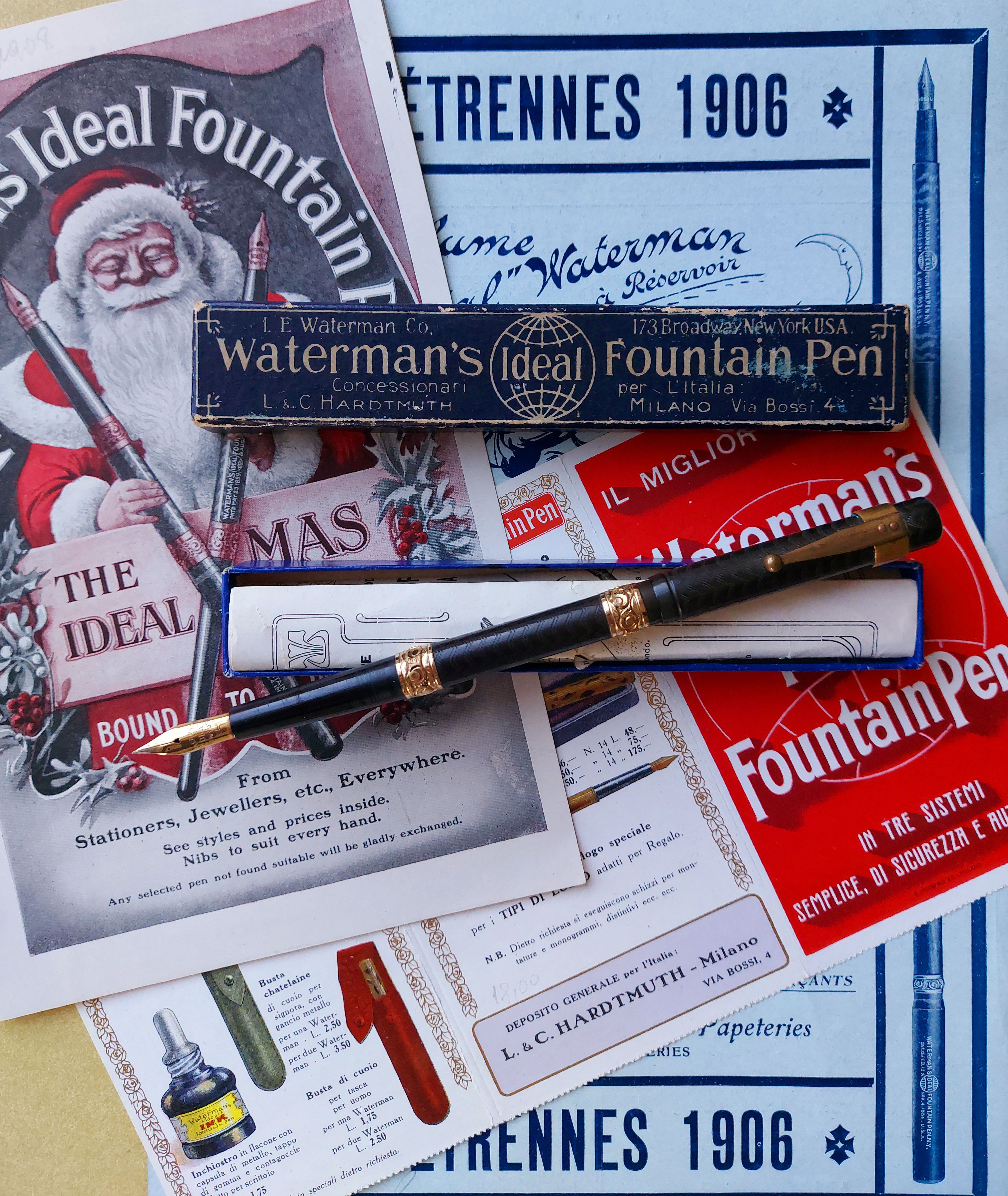 "WATERMAN'S IDEAL FOUNTAIN PEN (con "IDEAL" inscritto in un globo)